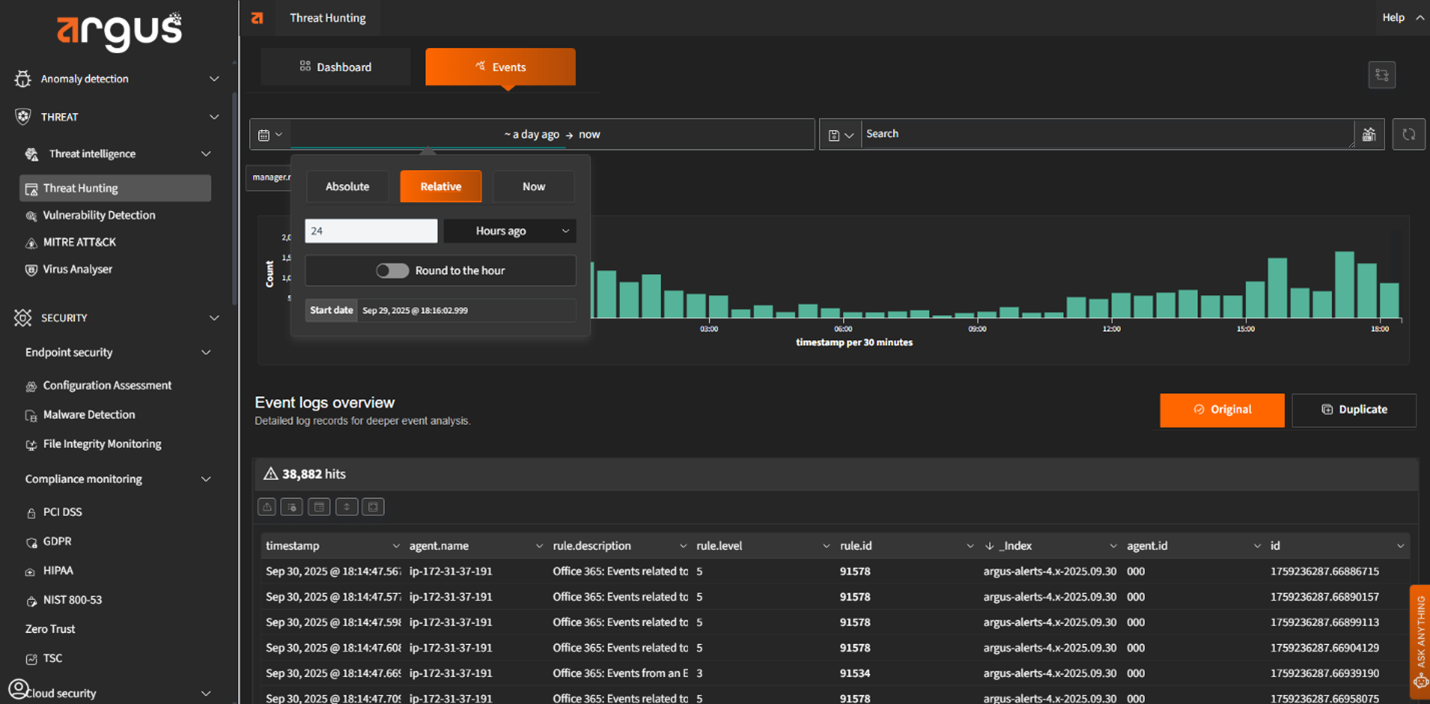 Monitor, detect, and investigate threats instantly with Argus’s native SIEM or enhance your existing stack without disruption.